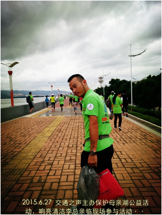 2015年昆明滇池保護母親湖公益活動響亮公司參與:跑步正能量、隨手撿起地上垃圾。