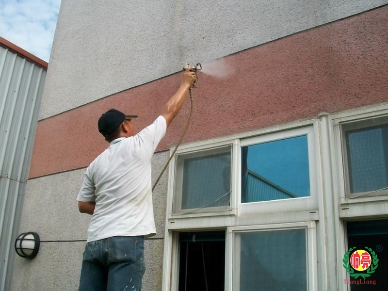 (2)噴涂真石漆:選用真石漆噴槍,空氣壓力控制在4-7千克/平方厘米,施工溫度10攝氏度以上,厚度約2-3mm,如需涂抹兩道、三道,則間隔2小時,干燥24小時后方可打磨。