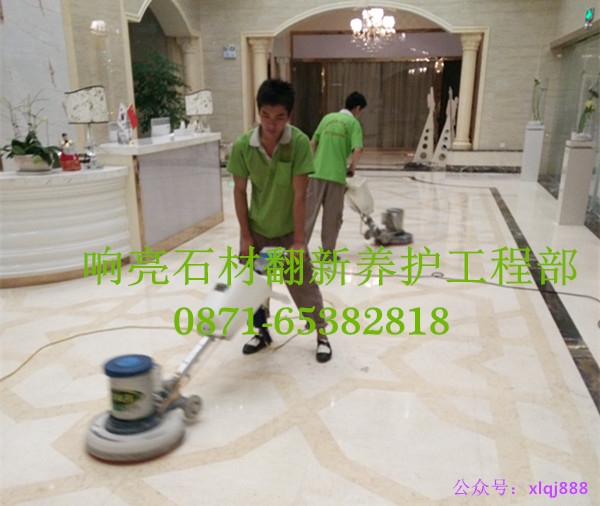但我們也常常發(fā)現(xiàn),當(dāng)我們做過很好的結(jié)晶處理后,經(jīng)過很短的時間就出現(xiàn)退光現(xiàn)象.石材表面逐漸污濁起來,甚至有的跟人以破舊感 我們觀察發(fā)現(xiàn),其中主要原因是:處理后,雖然經(jīng)過數(shù)道打磨,精拋處理,又實(shí)施了結(jié)晶工藝,石材表面是亮起來了,但許多石材固有的缺陷─裂隙,凹坑沒有得到有效填充處理.當(dāng)賓館,飯店,商廈客人你來我往行走過后,塵埃,臟物甚至有色液體在這些裂隙,凹坑內(nèi)得以積存.許多賓館的保潔管理人員,雖然不厭其煩的時時清潔:刻刻打掃,但他們使用的地拖上的許多清潔材料,以及上光的地蠟也混合塵埃在裂隙,凹坑中反復(fù)得到積存.日積月累,雖然只是點(diǎn)點(diǎn)的凹坑,絲絲的裂隙,但它們搞得整個大堂地面整體感觀不堪入目,使人們感覺衛(wèi)生很差,不僅給人們的視覺帶來不適,還給人們的心境帶來不悅,直接影響到經(jīng)營.